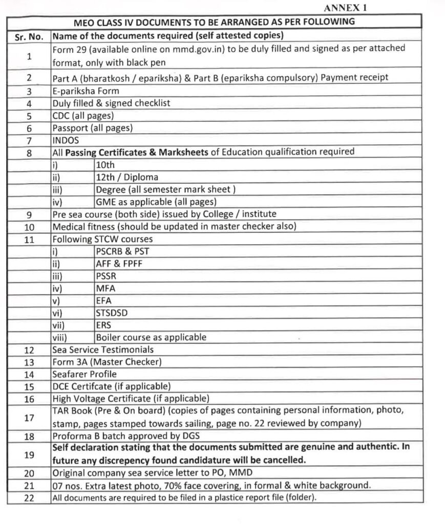 - You can take xerox or photocopies of all the documents except your Sea Service letter, Testimonials, Pre Sea certificates.